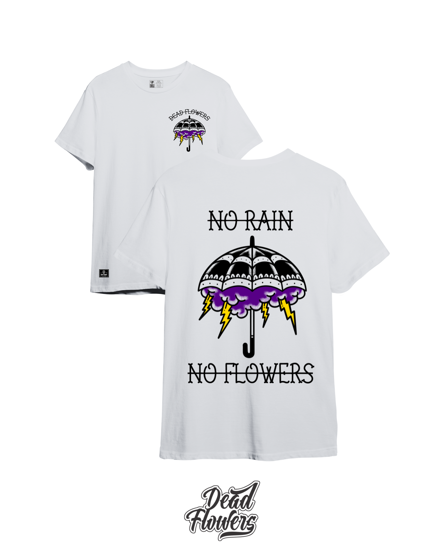 Estampa exclusiva DEAD FLOWERS, tag de la marca al frente y etiqueta interna indicando los cuidados de la prenda.